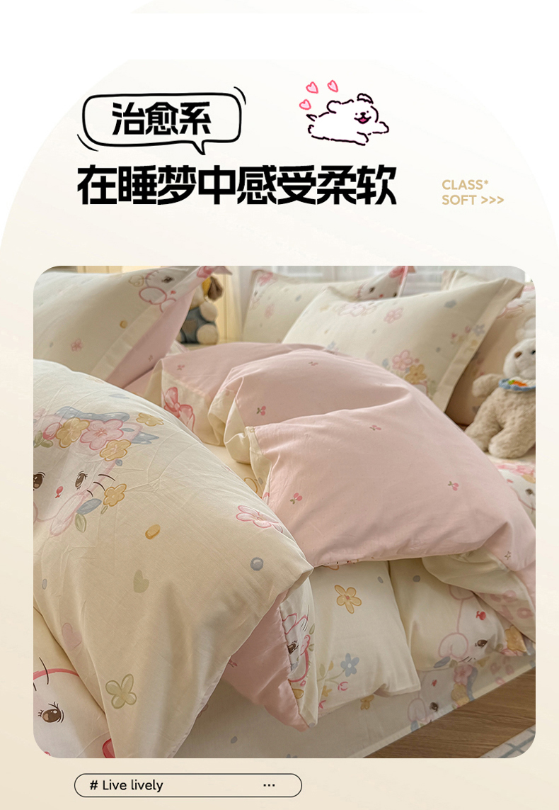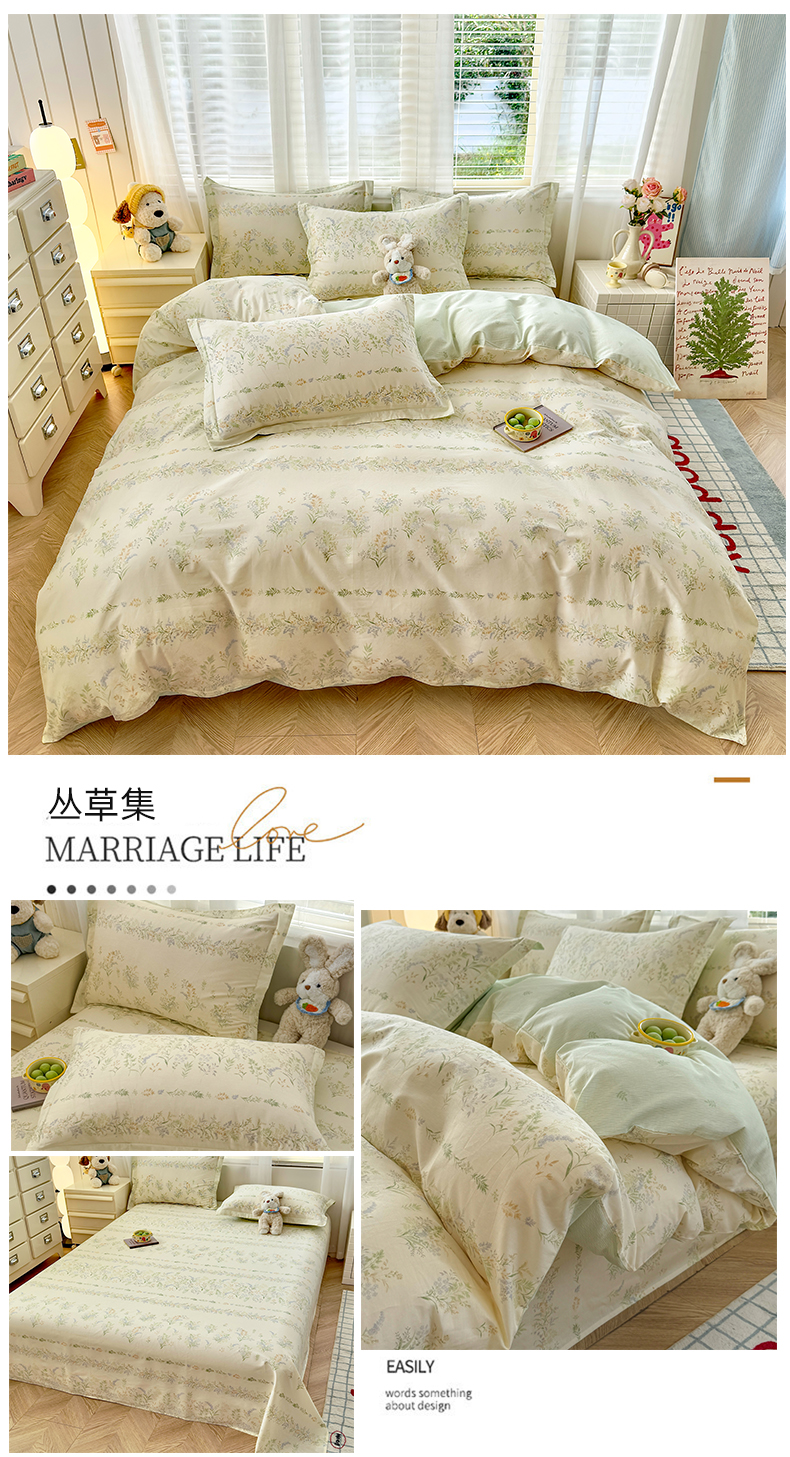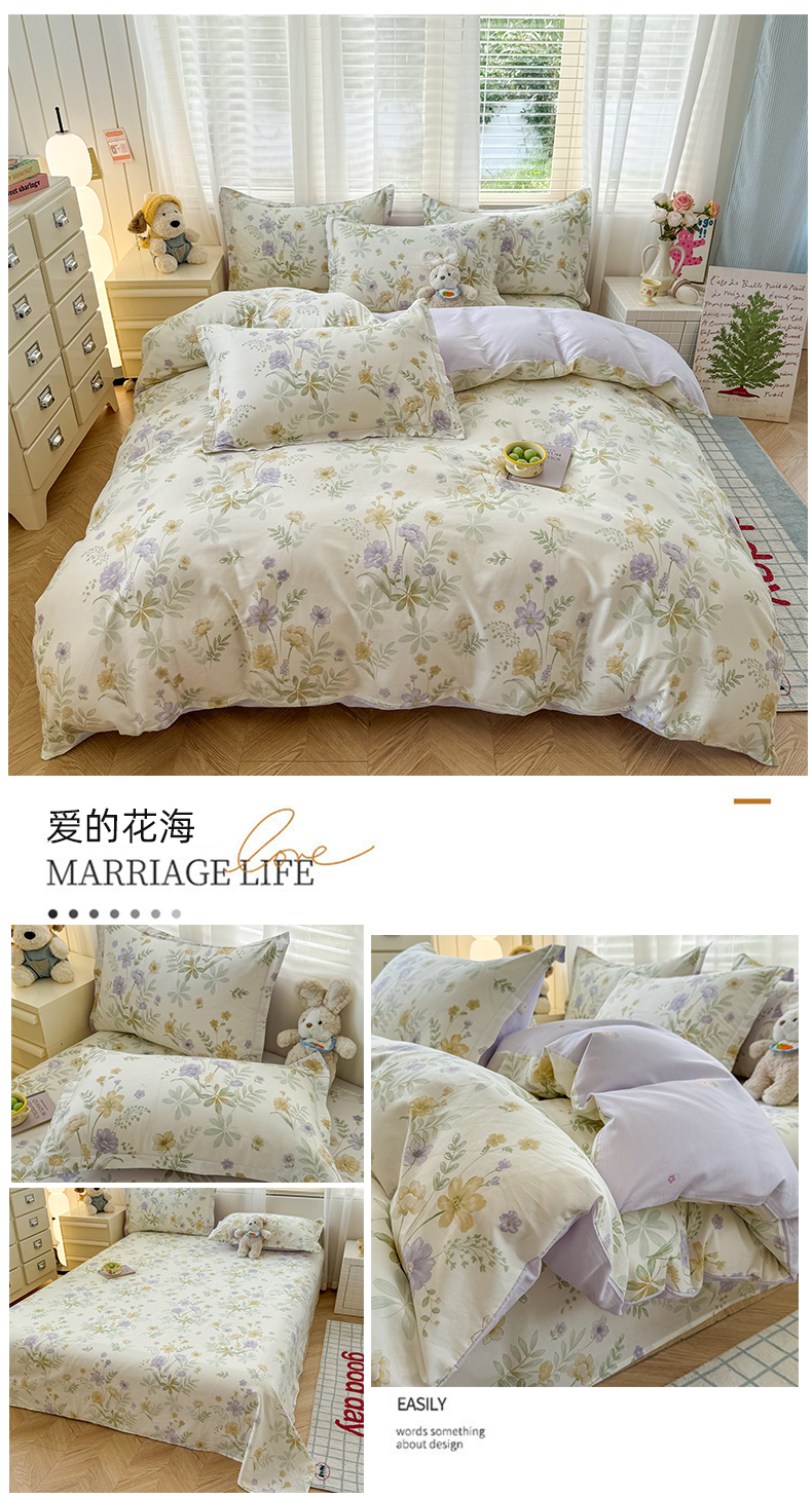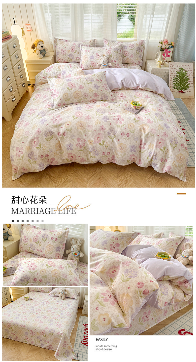 - - 2025新款高支高密全棉小清新碎花少女心枕套系带系列四件套