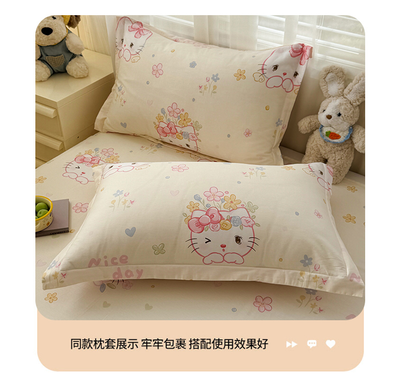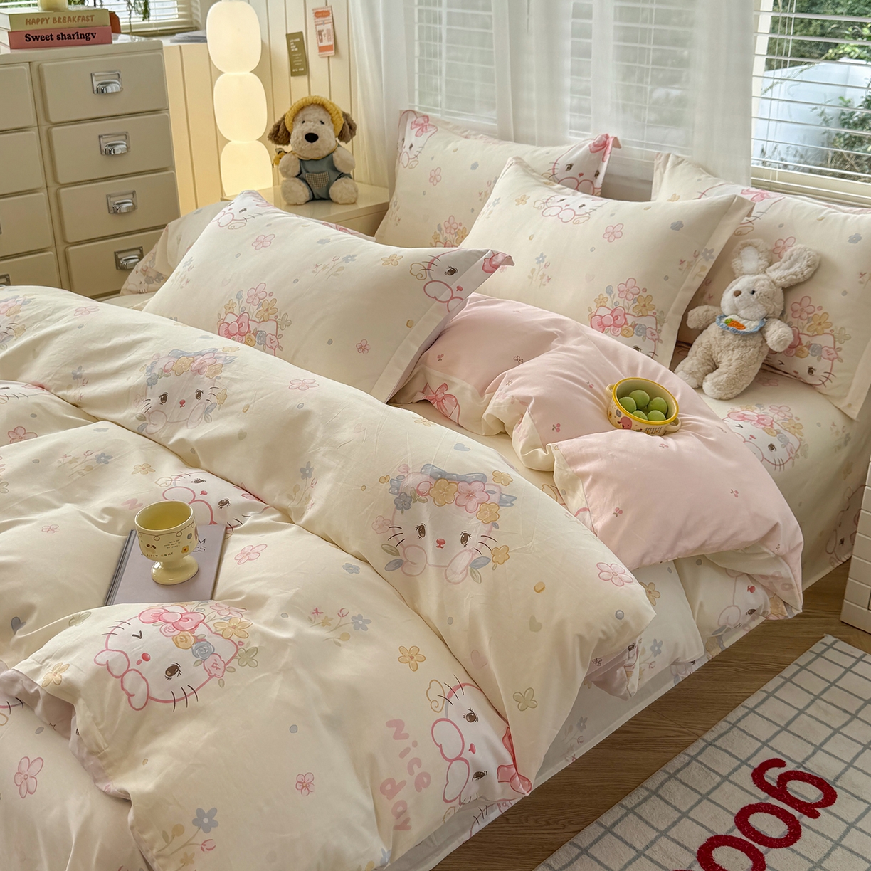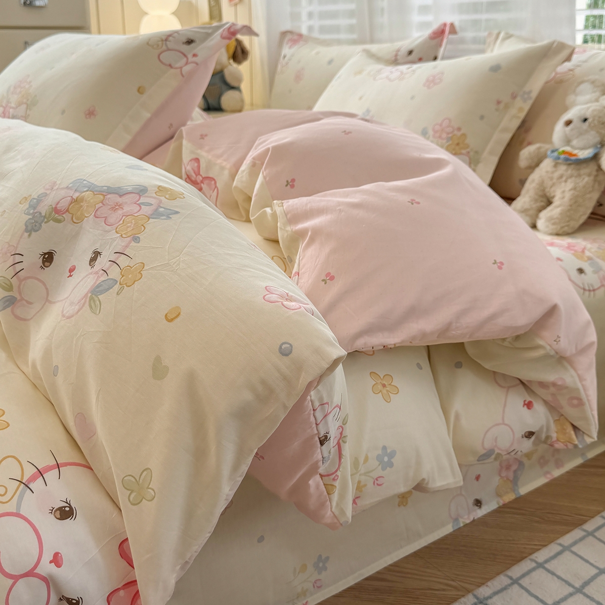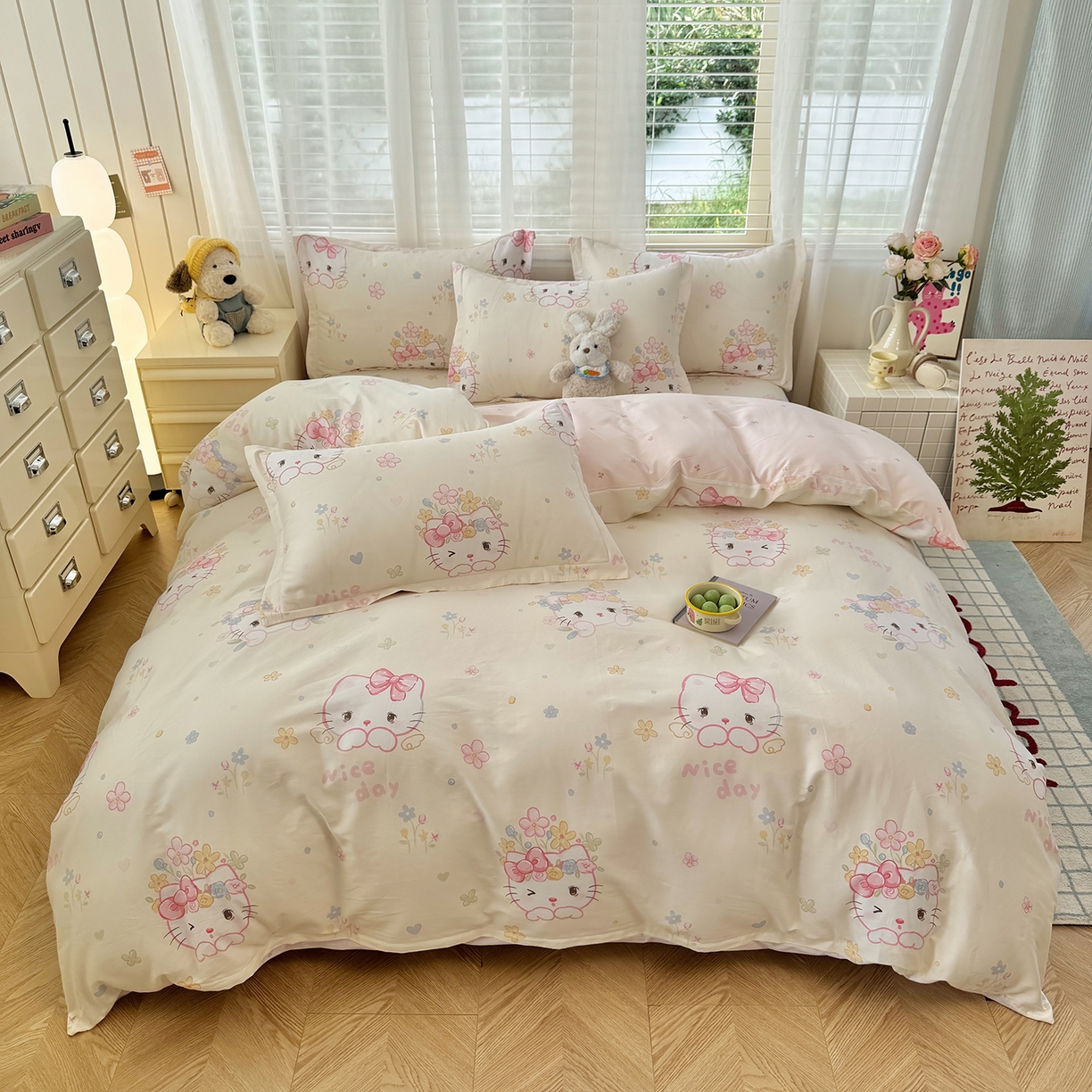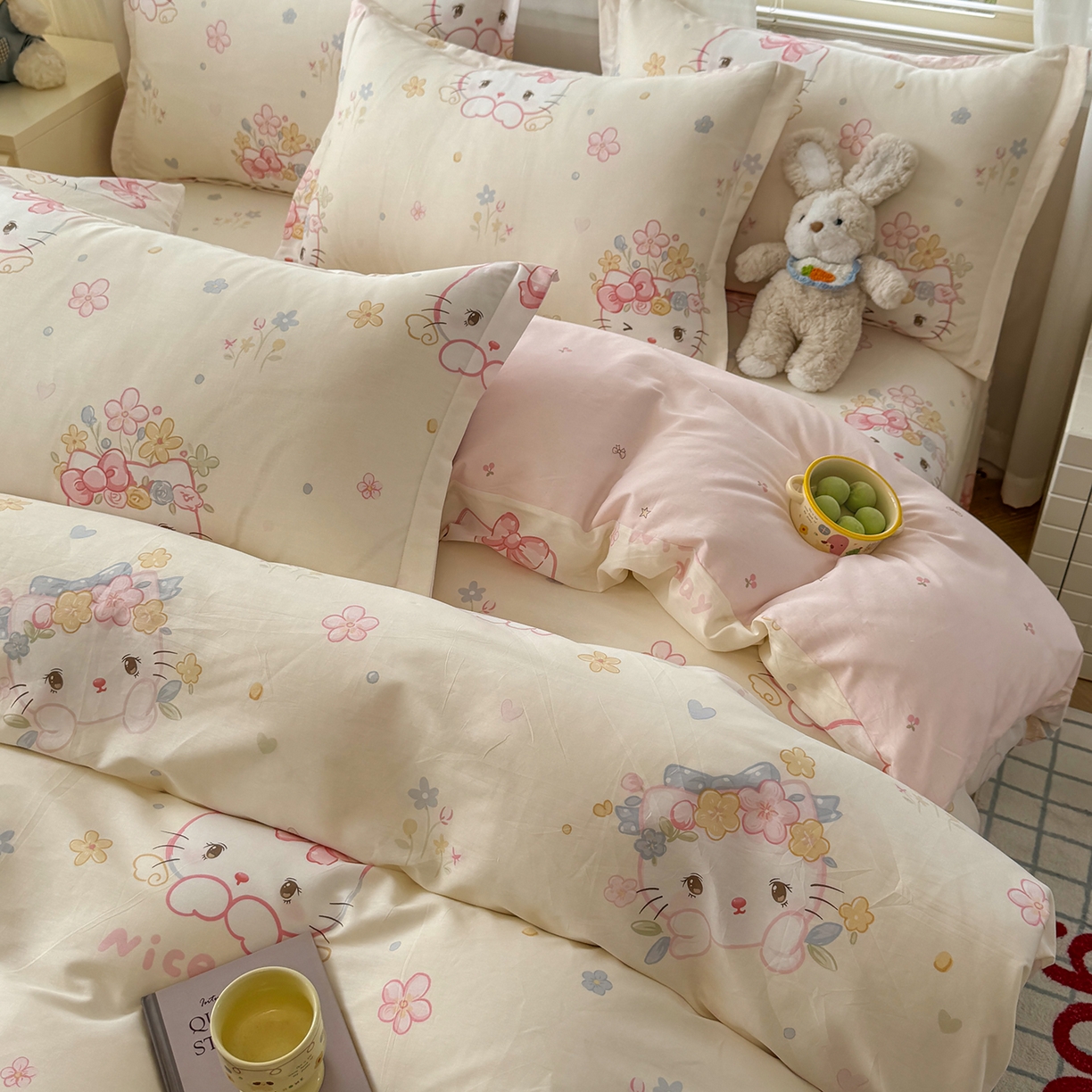 - - 2025新款高支高密全棉小清新碎花少女心枕套系带系列四件套