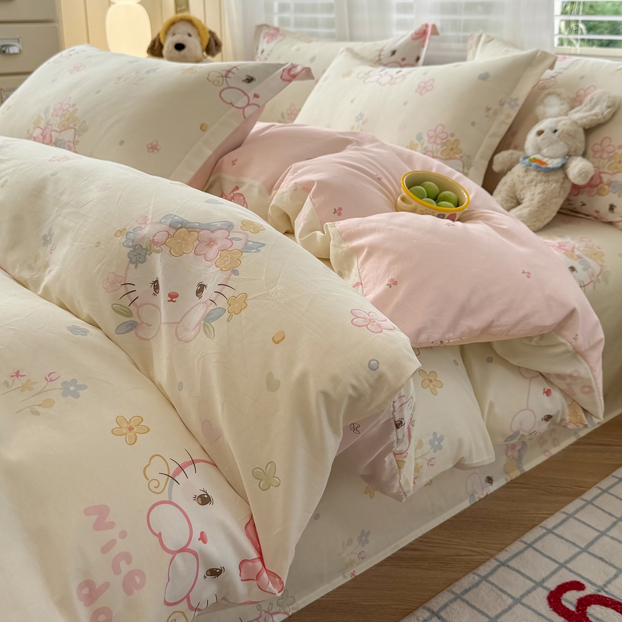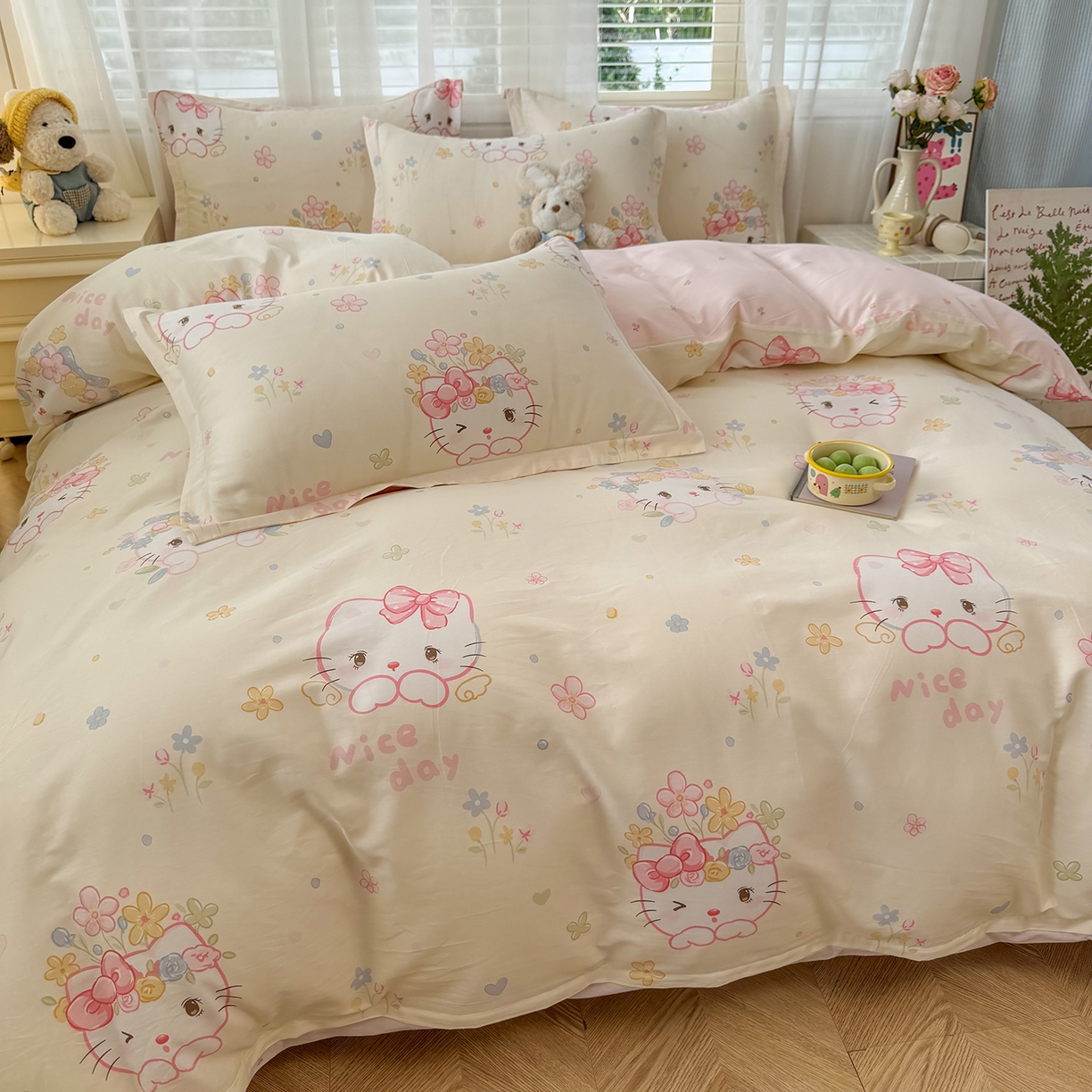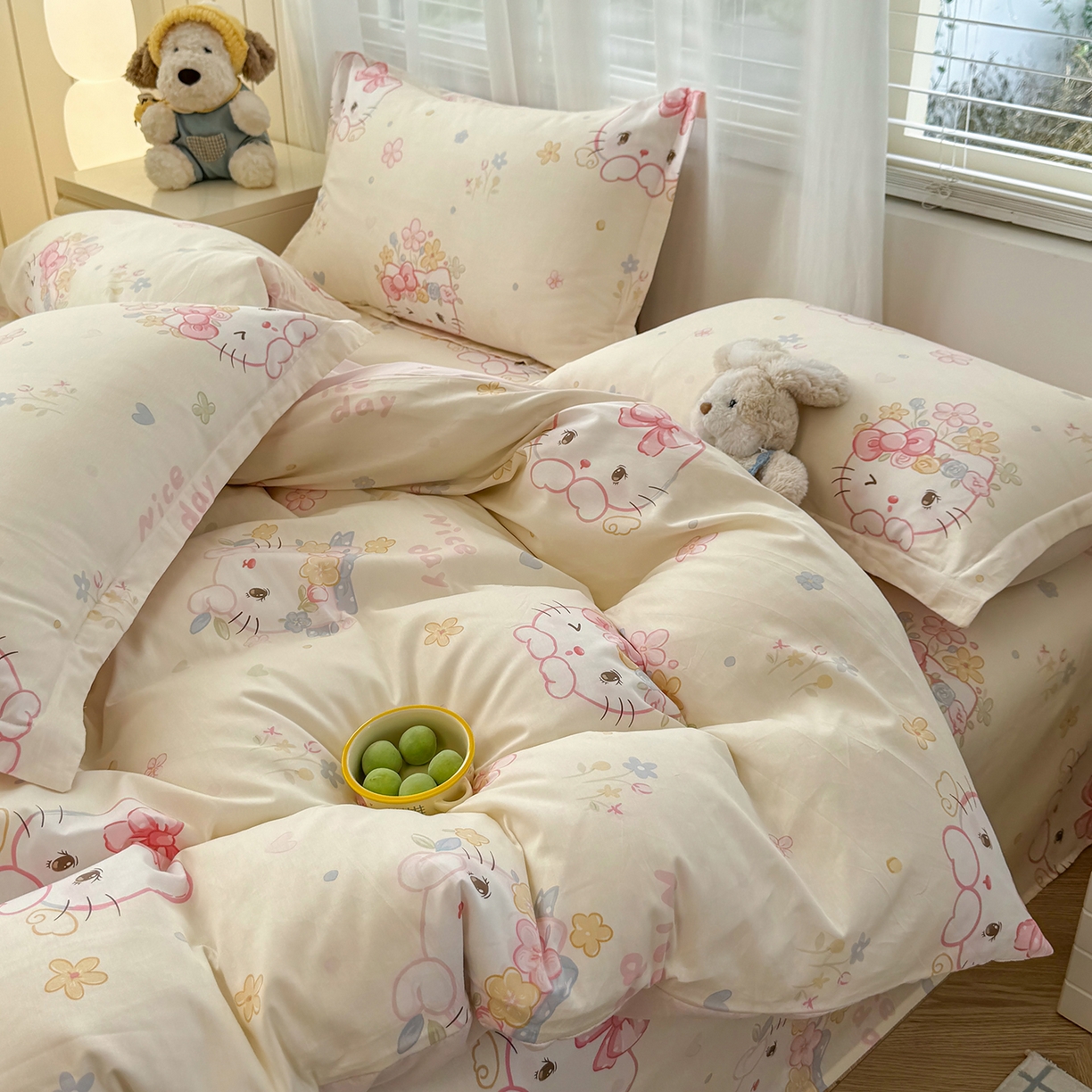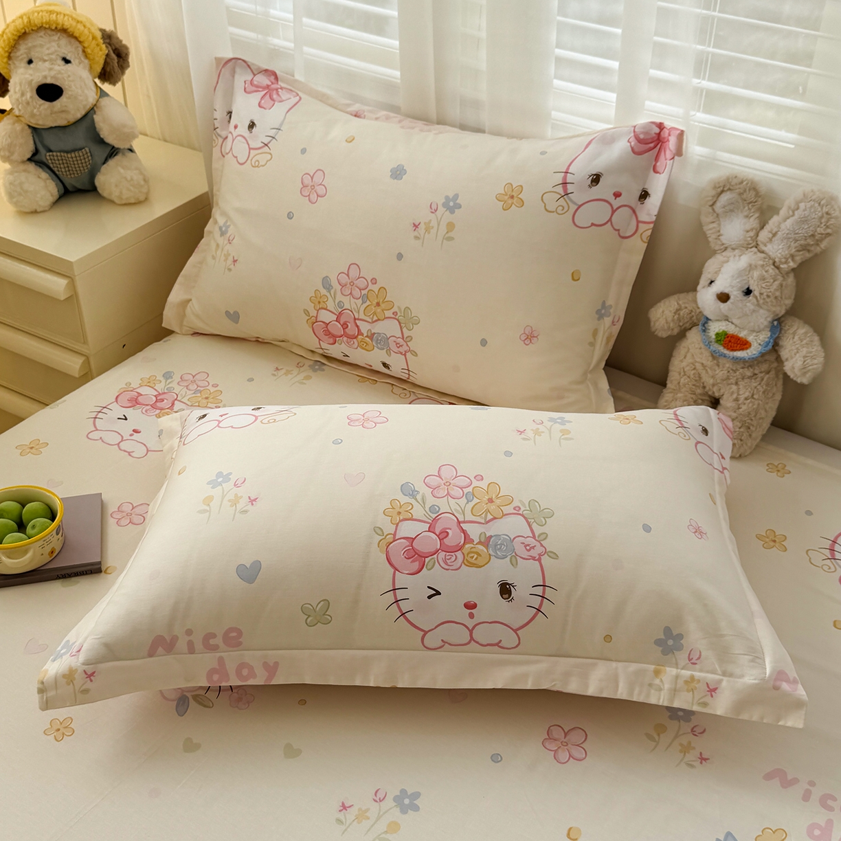 - - 2025新款高支高密全棉小清新碎花少女心枕套系带系列四件套