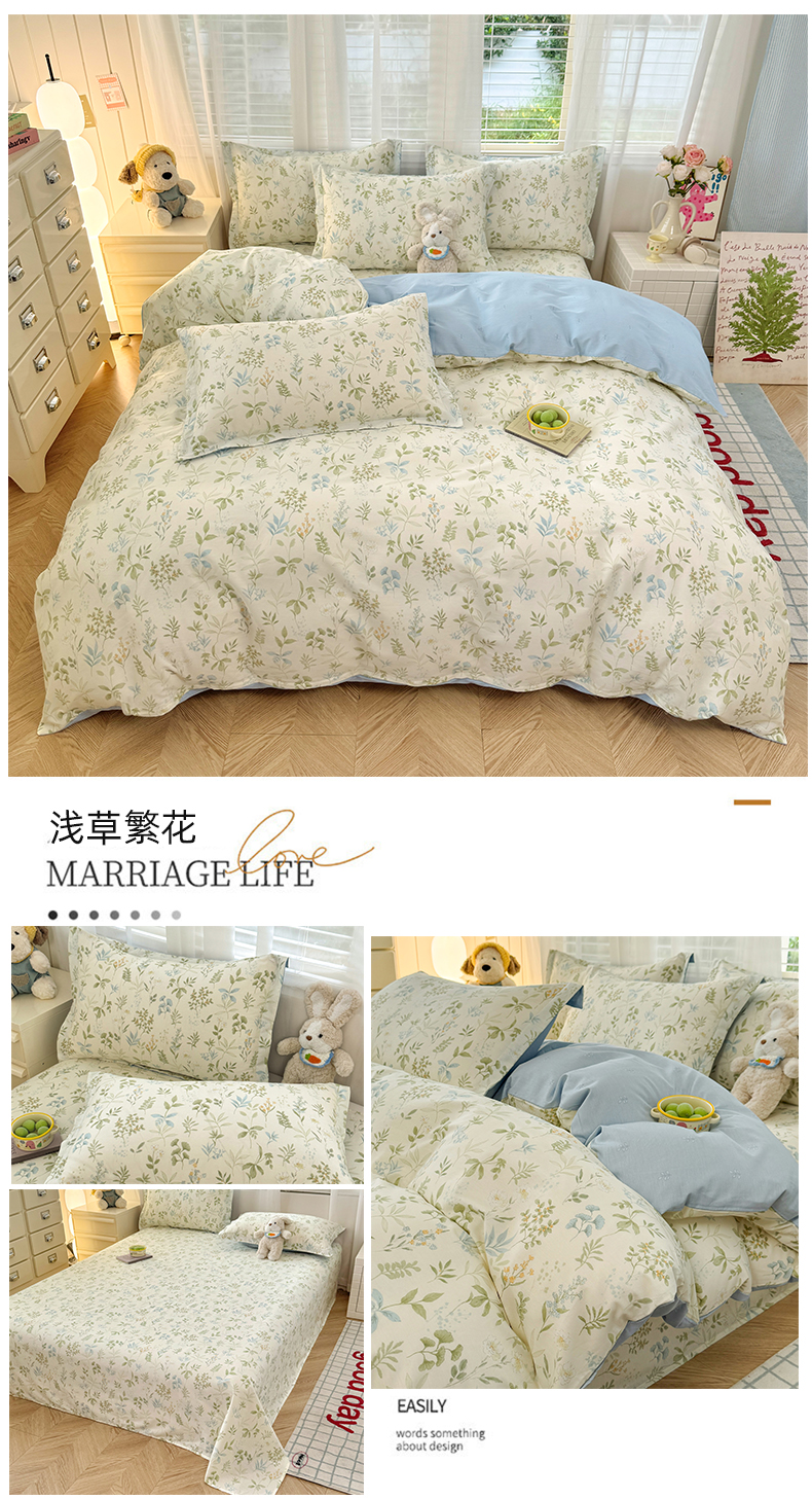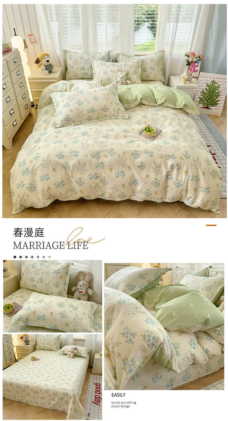 - - 2025新款高支高密全棉小清新碎花少女心枕套系带系列四件套